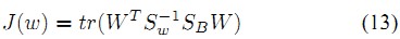 In LDA, a discriminant vector w is obtained by maximizing the following class separability: