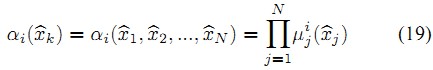 which, if we insert the normalized univariate fuzzy sets for each μi (xi) in rewritten form as given: