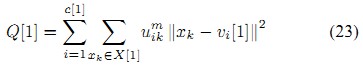 In [11], he presents the dynamic formation of fuzzy clusters splitting and merging mechanisms. He describes that the objective function minimized by the FCM for the 1st data snapshot exploits the standard sum of distances: