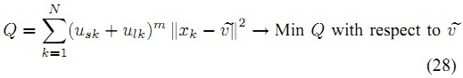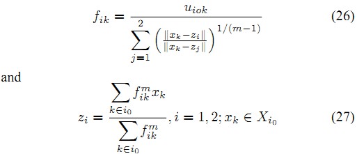 zi are the prototypes and F = [fik] denotes the partition matrix that satises constraint (25). The detailed calculations of the partition matrix F and the two prototypes z1 and z2 are carried out iteratively according to the two expressions: