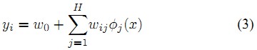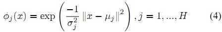 where w0 is a bias and φj(x) is a Gaussian function associated with the jth hidden unit which is defined by the mean μj and the standard deviation σj .φj(x)is defined as: