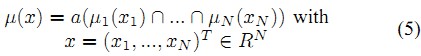 For high-dimensional fuzzy sets, i.e. larger number of N, μ(x) would too quickly decrease to zero when moving away from the modal point if T-norm intersection operators would be used. The N-fold intersection of N truth values μi , i = 1; :::;N, is defined as:
