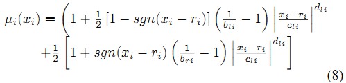 In [6], they formulate a multivariate case extension to a fuzzy set μ defined in a N-dimensional space of features xi; i = 1; :::;N, an intersection of N normalized fuzzy sets of this type is being performed and assigned one joint maximum truth value a, which will again occur at the modal point x = r of this set: